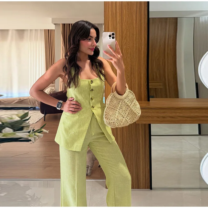 Conjunto Feminino em Linho ''Lime Eleganc” – Moderno, Leve e Sofisticado