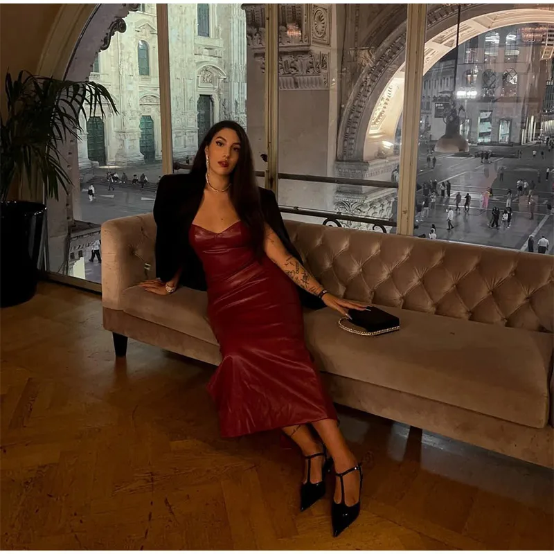 Com modelagem slim que valoriza cada curva, o vestido sem mangas realça o colo e os ombros com sofisticação. A amarração nas costas traz um charme adicional e permite ajustar o caimento, deixando o visual ainda mais elegante. A fenda lateral completa o look com movimento e ousadia, criando uma silhueta poderosa e marcante.